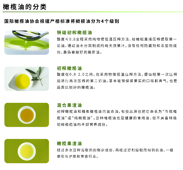 國際橄欖油協(xié)會根據嚴格標準將橄欖油分為4個級別: