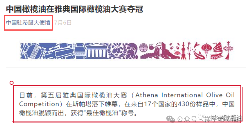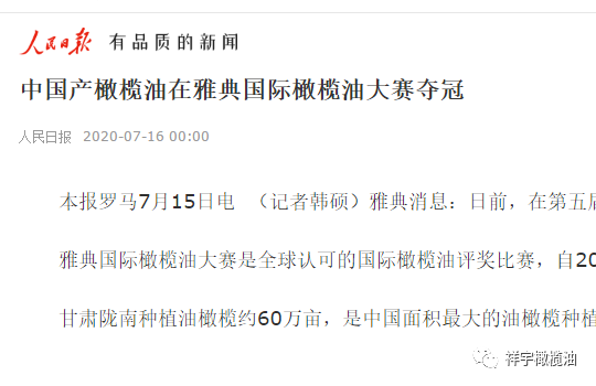 獲得“全球最佳橄欖油”稱號,同時榮獲大賽最高榮譽金獎!人民日報、駐希臘大使館均發(fā)文報道。