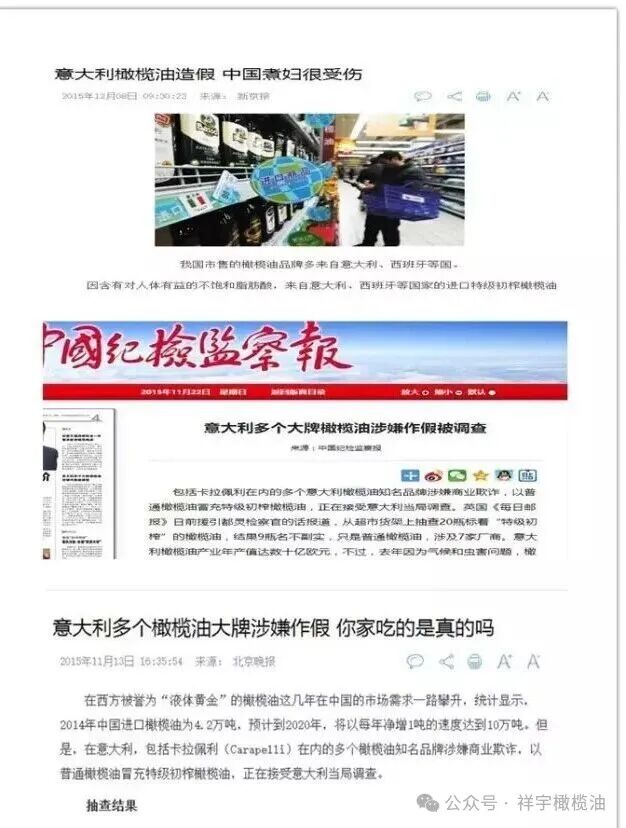 等級造假:將“精煉橄欖油”“調(diào)和橄欖油”,偽造檢測報告,冒充“特級初榨”,欺騙消費者。