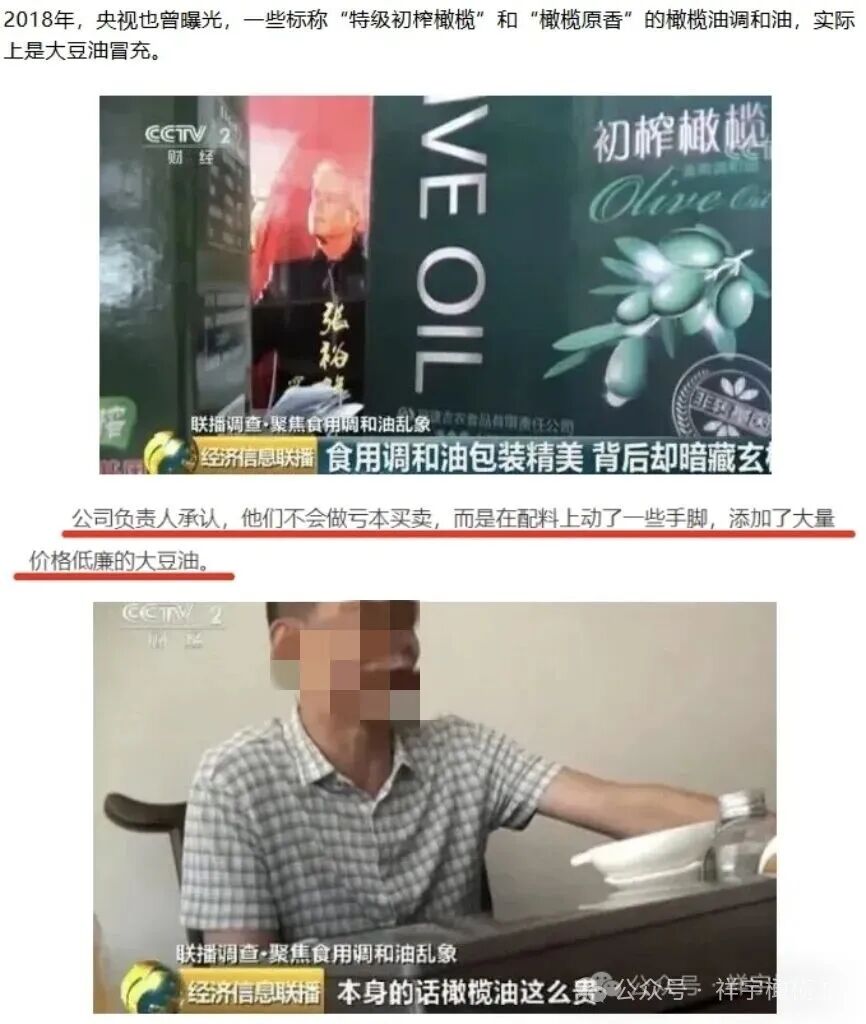 勾兌造假:用低價精煉橄欖油、葵花籽油、大豆油勾兌,偽裝成“特級初榨”,成本驟降,售價卻翻數(shù)倍;