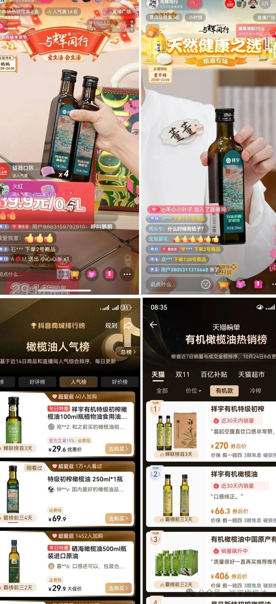 天貓、抖音有機橄欖油類目銷量第一